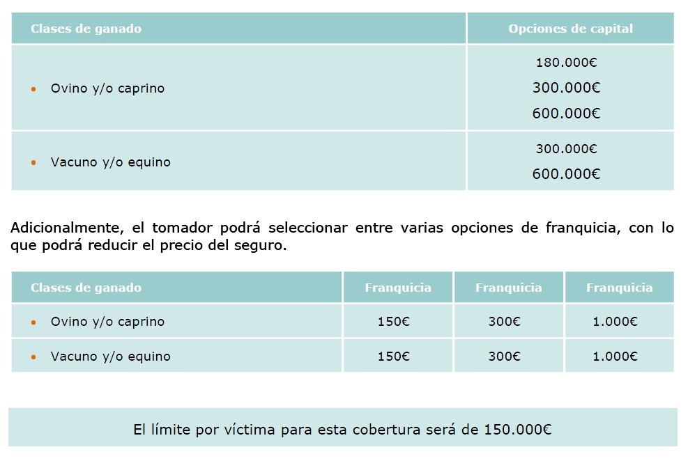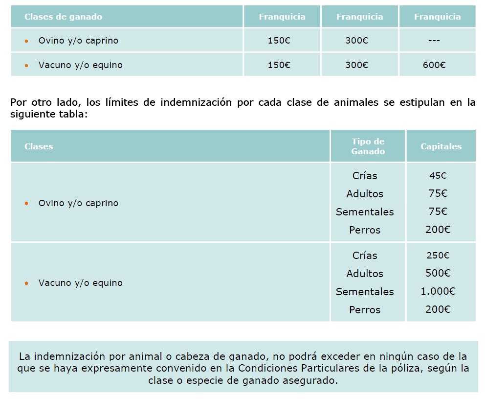 Para ambas coberturas será de aplicación una franquicia que se seleccionará en función del tipo de ganado.